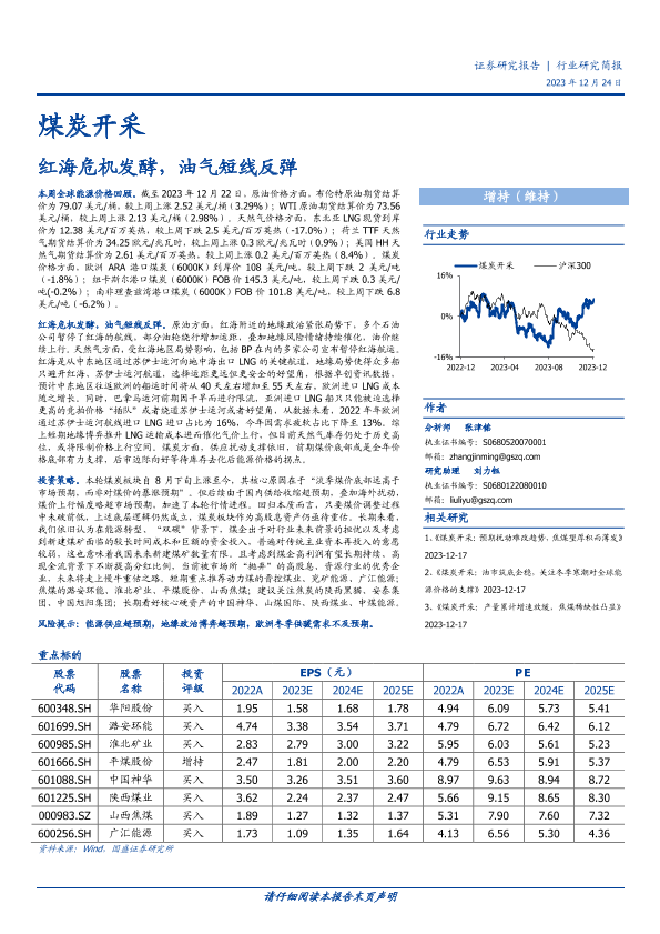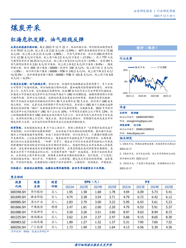 【国盛证券】【20231224】煤炭开采行业研究简报:红海危机发酵,油气短线反弹-13页