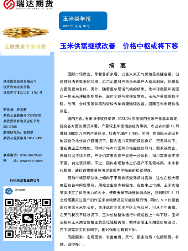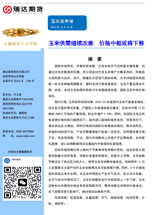 【瑞达期货】【20231220】玉米供需继续改善 价格中枢或将下移-18页