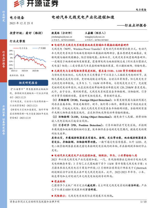 【开源证券】【20231225】电力设备行业点评报告:电动汽车无线充电产业化进程加速-10页