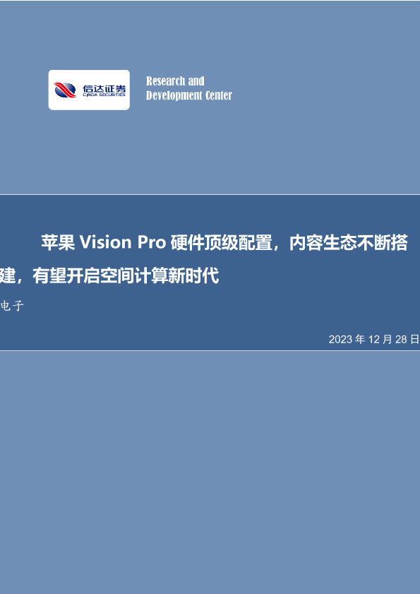 【信达证券】【20231228】苹果 Vision Pro硬件顶级配置,内容生态不断搭建,有望开启空间计算新时代-26页