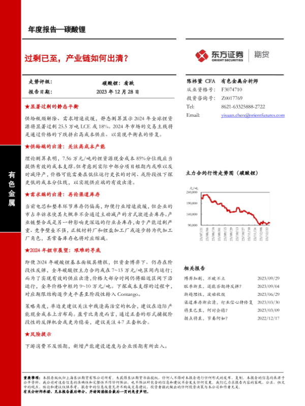 【东证期货】【20231228】碳酸锂年度报告:过剩已至,产业链如何出清?-21页