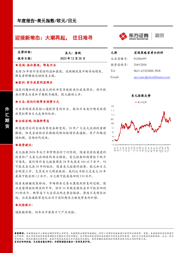 【东证期货】【20231226】美元指数 欧元 日元年度报告:迎接新常态:大潮再起,往日难寻-27页