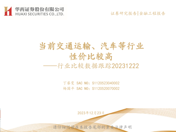 【华西证券】【20231223】行业比较数据跟踪:当前交通运输、汽车等行业性价比较高-22页