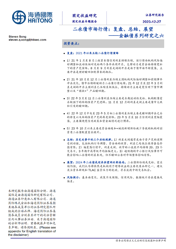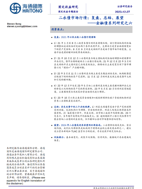 【海通国际】【20231227】二永债市场行情:复盘、总结、展望 ——金融债系列研究之六-21页