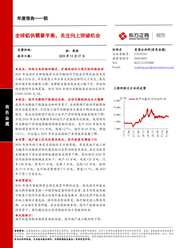 【东证期货】【20231227】铝年度报告:全球铝供需紧平衡,关注向上突破机会-36页