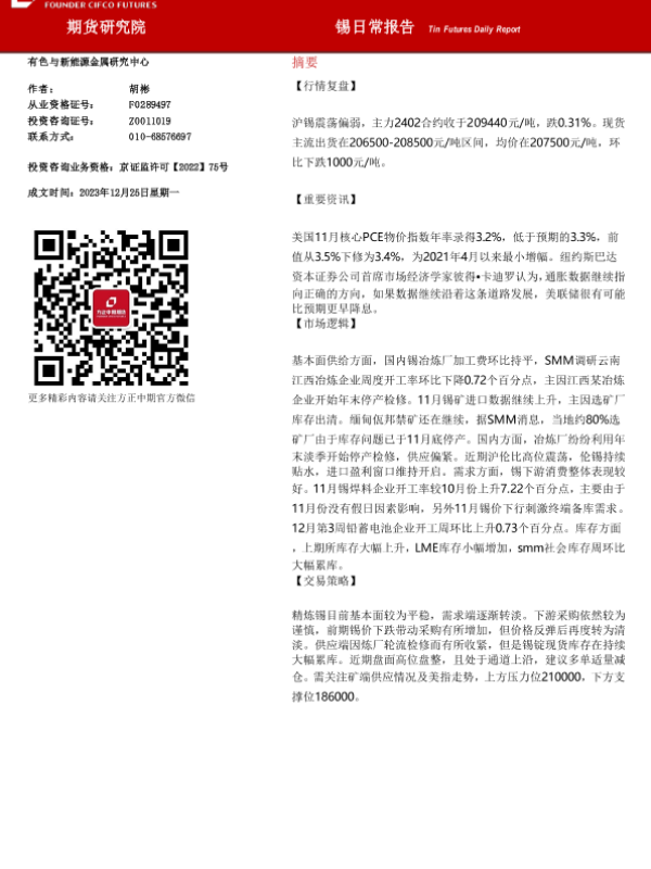 【方正中期期货】【20231225】锡日常报告-20231225-11页