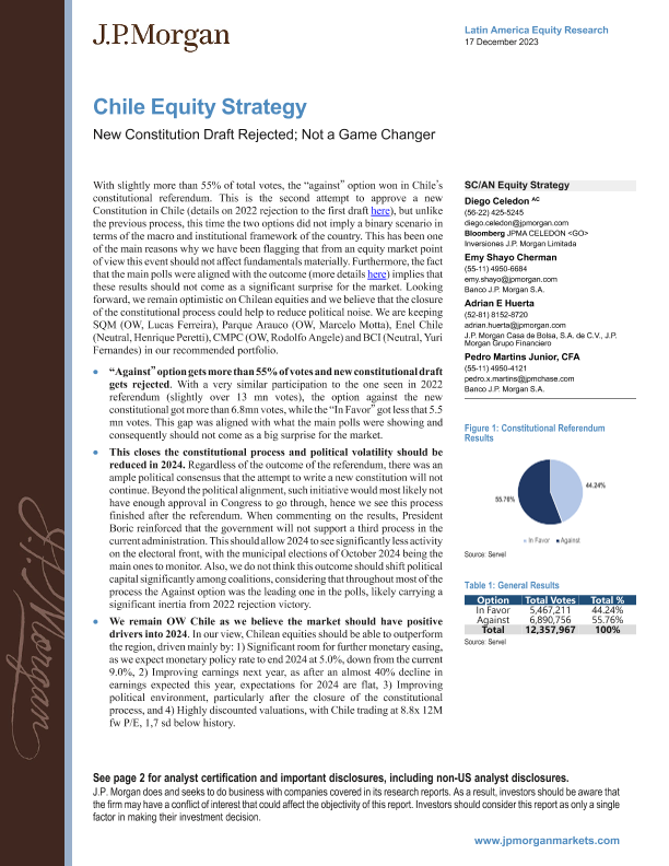 【J.P. Morgan】【20231217】Chile Equity Strategy New Constitution Draft Rejected; Not a Game Changer-7页