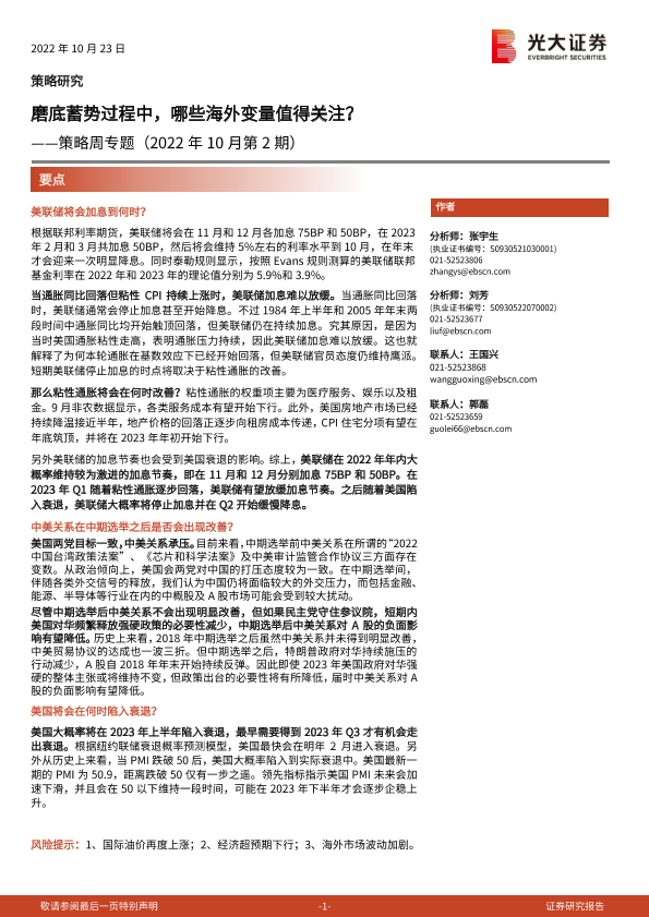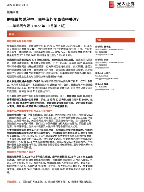 【光大证券】【20221023】策略周专题(2022年10月第2期):磨底蓄势过程中,哪些海外变量值得关注?-20页