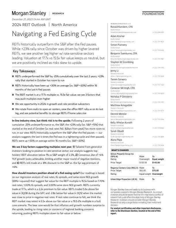 【Morgan Stanley】【202312】2024 REIT Outlook Navigating a Fed Easing Cycle-94页