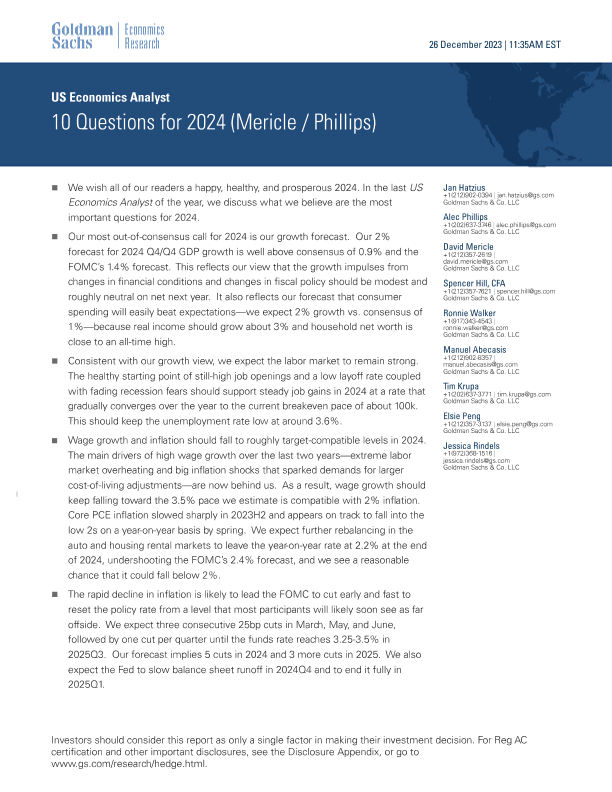 【Goldman Sachs】【20231226】US Economics Analyst_ 10 Questions for 2024-20页