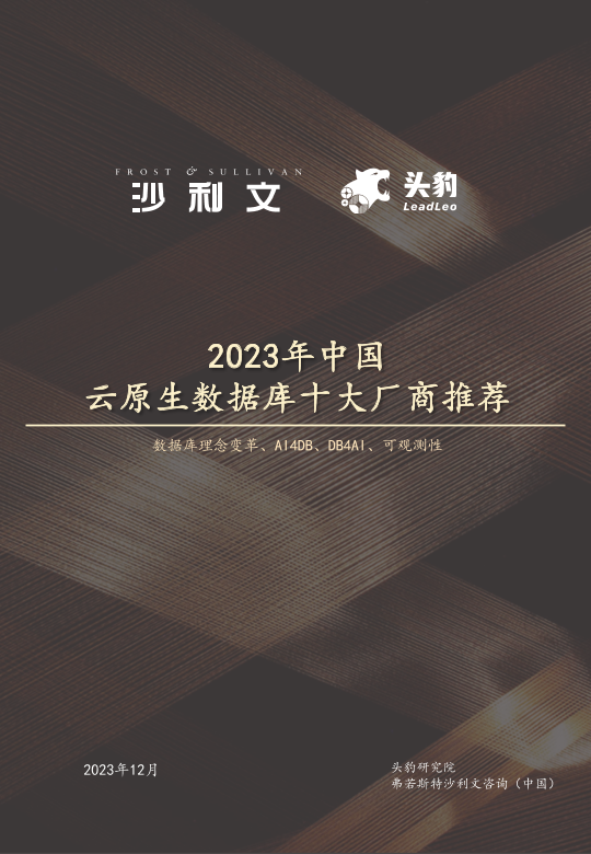 【头豹研究院 弗若斯特沙利文咨询(中国)】【202312】2023年中国云原生数据库十大厂商推荐-14页