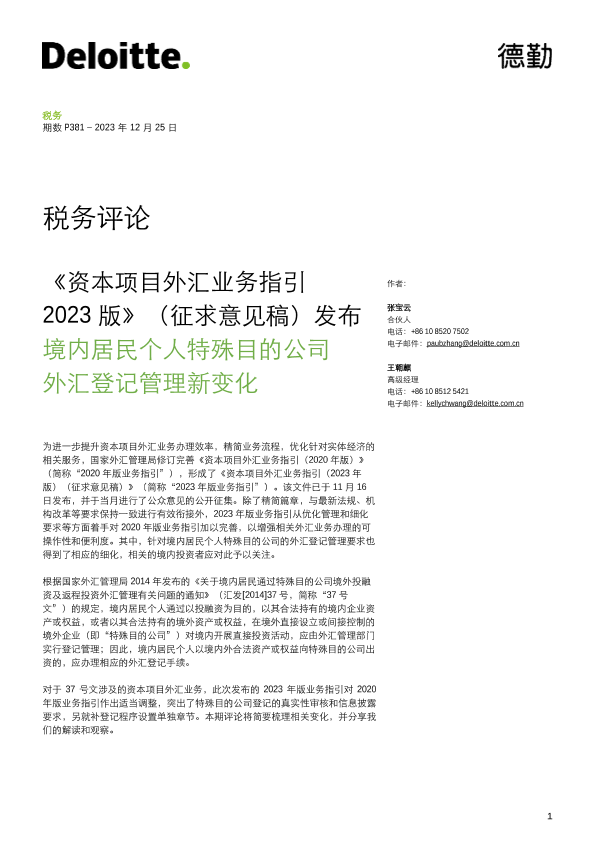 【德勤】【20231225】最新税务评论:资本项目外汇业务指引2023版-7页