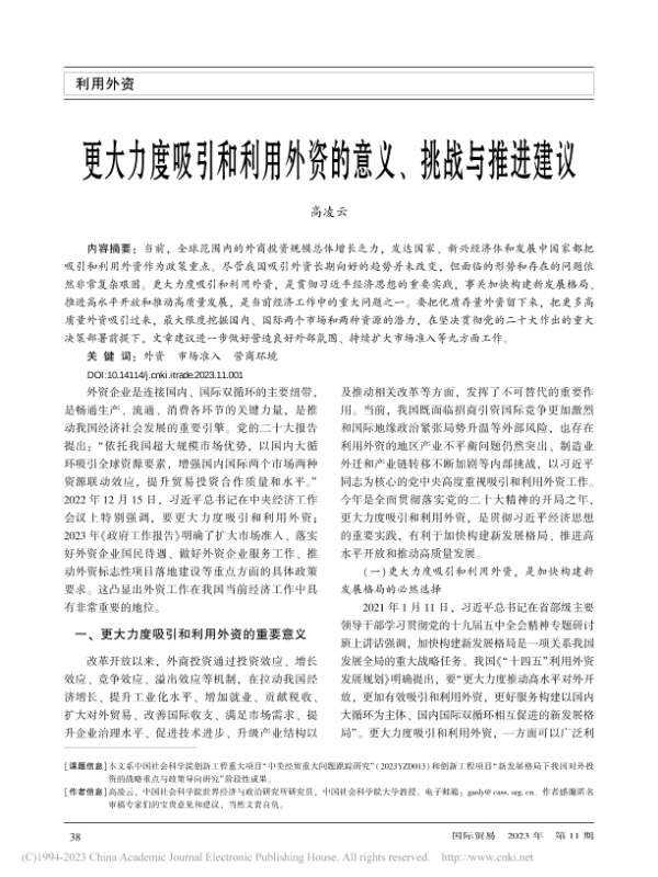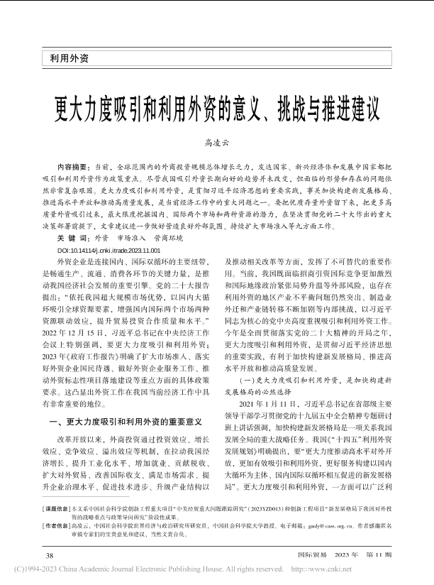 【中国社会科学院】【2023】更大力度吸引和利用外资的意义、挑战与推进建议-6页
