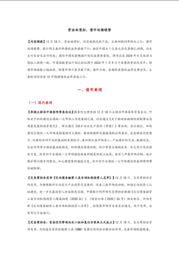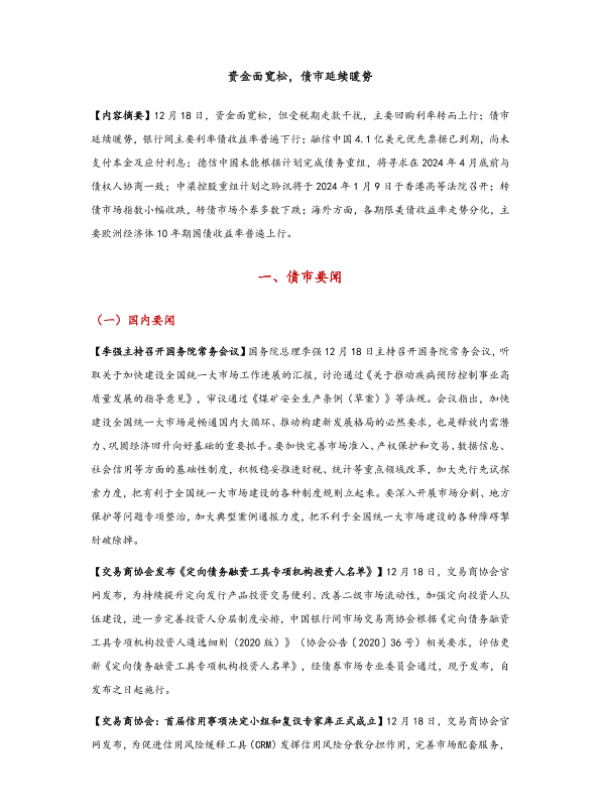 【东方金诚】【20231218】资金面宽松,债市延续暖势-8页
