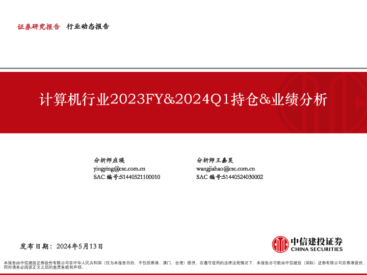 【中信建投证券】【20240513】计算机行业2023FY&2024Q1持仓&业绩分析-31页