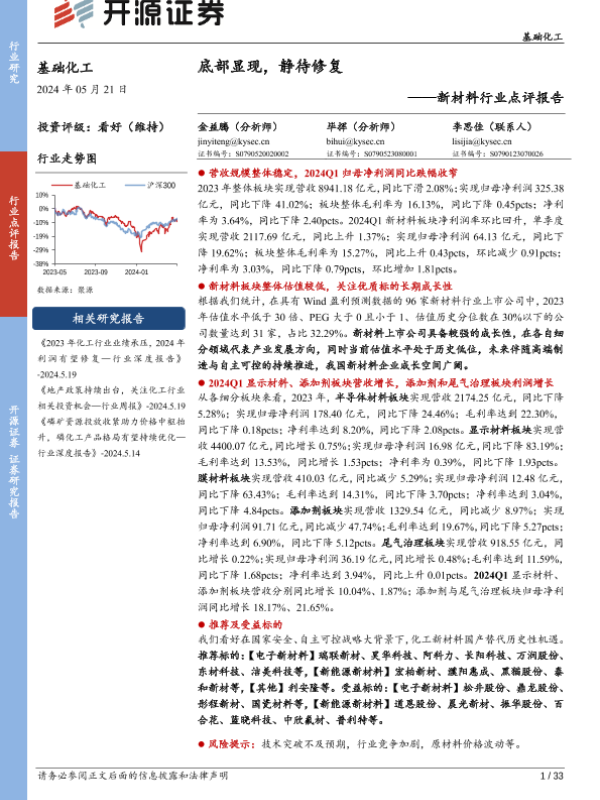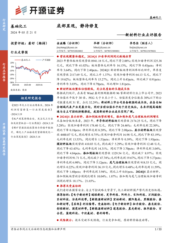 【开源证券】【20240521】基础化工新材料行业点评报告:底部显现,静待修复-33页