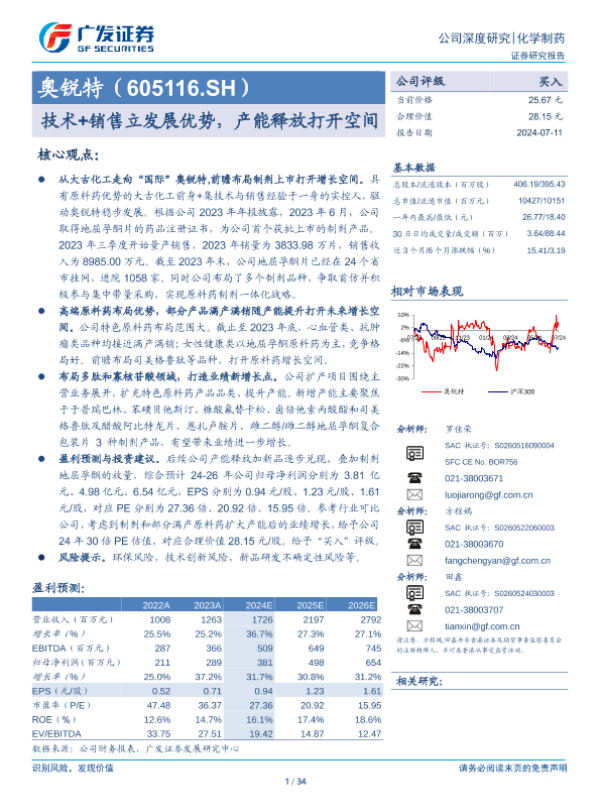 【广发证券】【20240711】奥锐特(605116)技术+销售立发展优势,产能释放打开空间-34页
