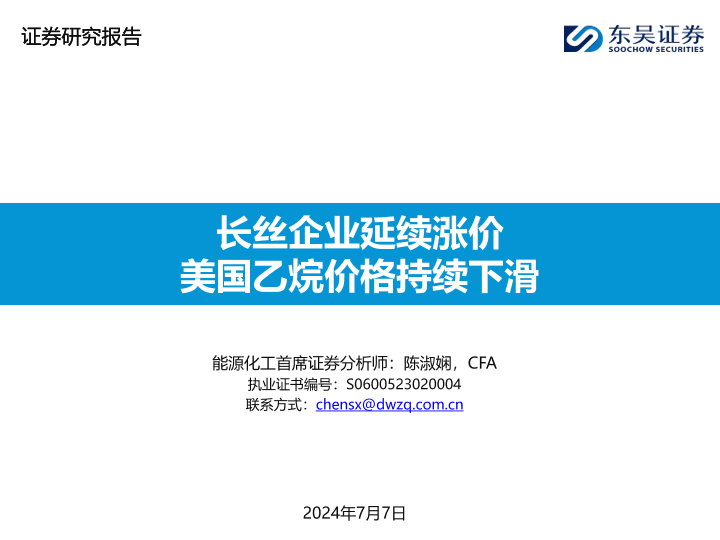 【东吴证券】【20240707】能源化工行业:长丝企业延续涨价,美国乙烷价格持续下滑-46页