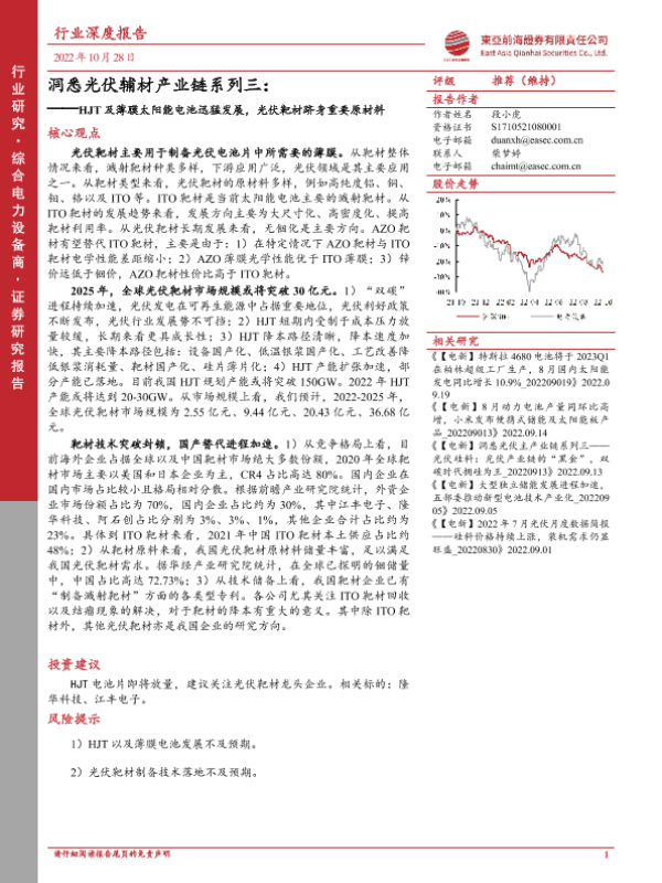 【东亚前海证券】【20221028】综合电力设备商行业洞悉光伏辅材产业链系列三:HJT及薄膜太阳能电池迅猛发展,光伏靶材跻身重要原材料-28页