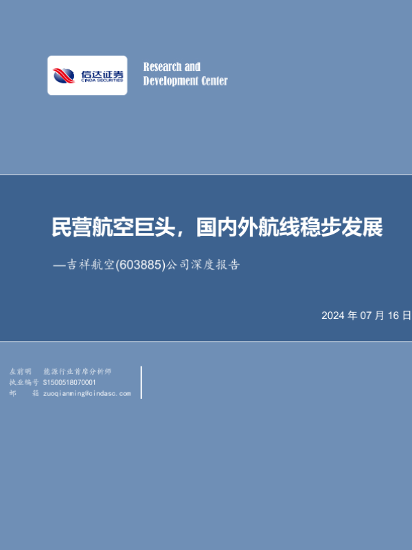 【信达证券】【20240716】吉祥航空(603885)公司深度报告:民营航空巨头,国内外航线稳步发展-30页