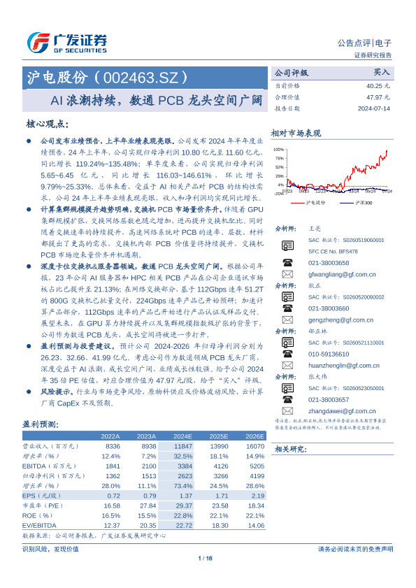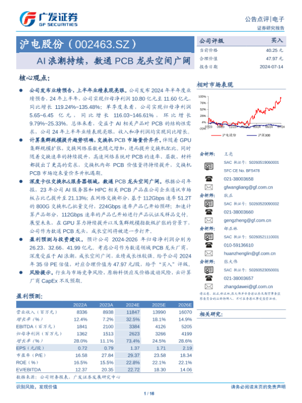 【广发证券】【20240714】沪电股份(002463)AI浪潮持续,数通PCB龙头空间广阔-16页