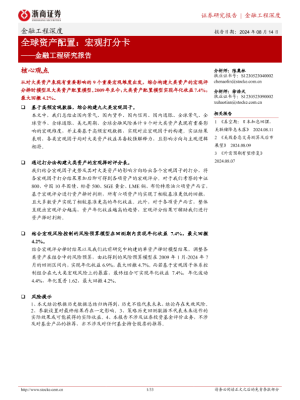 【浙商证券】【20240814】金融工程研究报告-全球资产配置:宏观打分卡-33页