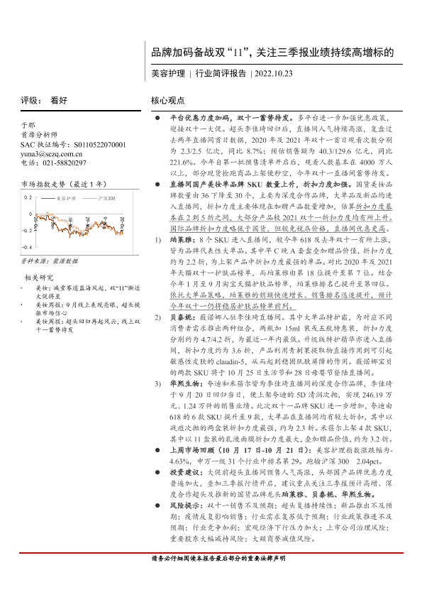 【首创证券】【20221023】美容护理行业简评报告:品牌加码备战双“11”,关注三季报业绩持续高增标的-17页