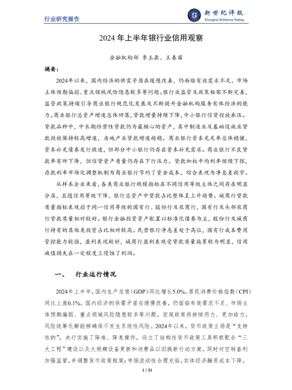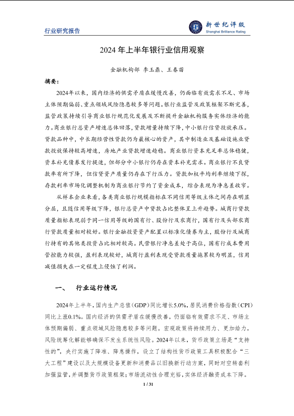 【金融机构部李玉鼎、王春苗】【2024】2024年上半年银行业信用观察-31页