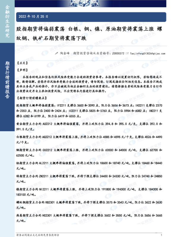 【国泰君安期货】【20221025】股指期货将偏弱震荡,白银、铜、镍、原油期货将震荡上涨,螺纹钢、铁矿石期货将震荡下跌-44页
