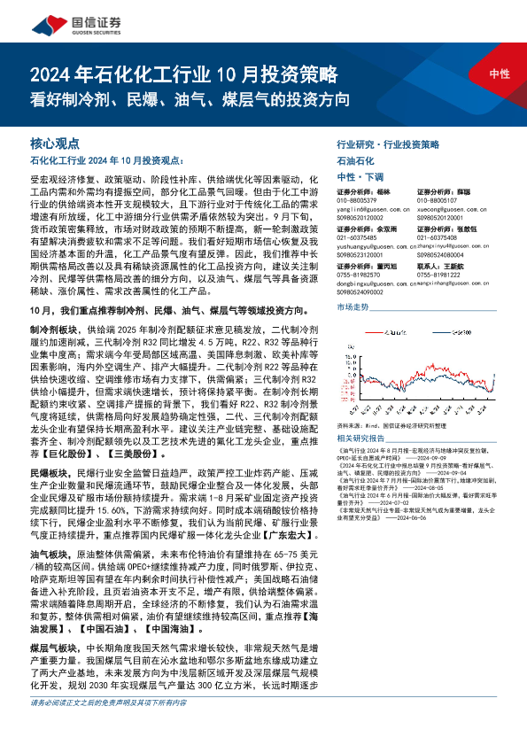 【国信证券】【20240929】2024年石化化工行业10月投资策略:看好制冷剂、民爆、油气、煤层气的投资方向-47页
