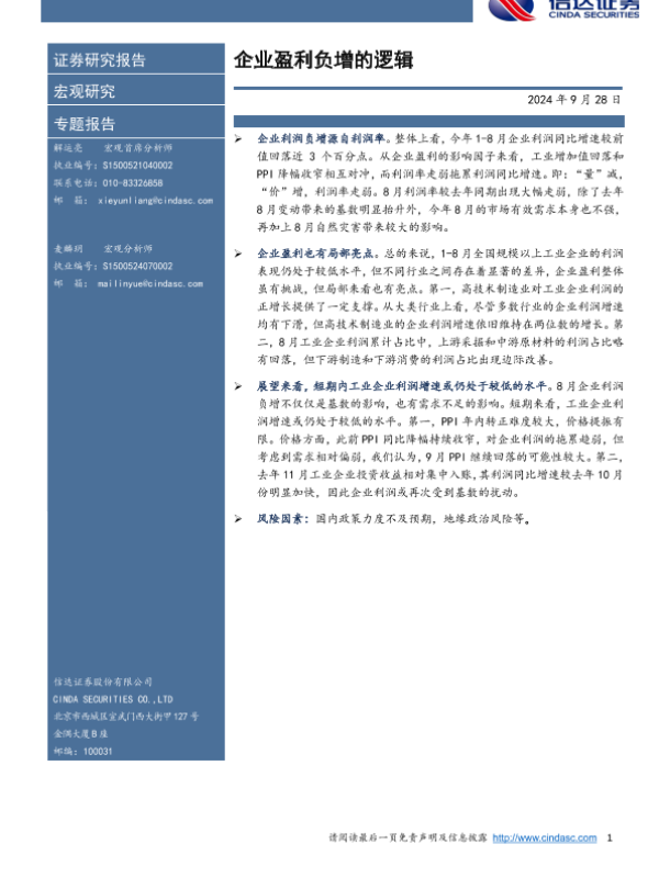 【信达证券】【20240928】企业盈利负增的逻辑-10页