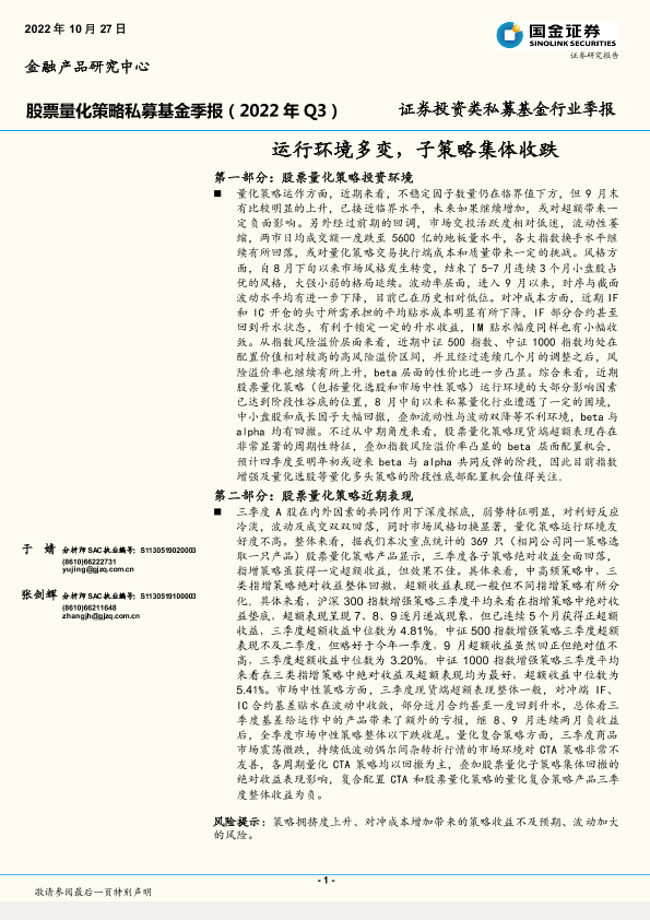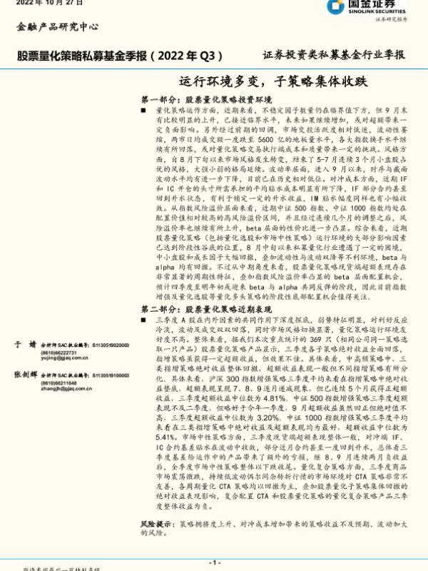 【国金证券】【20221027】股票量化策略私募基金季报(2022年Q3):运行环境多变,子策略集体收跌-17页