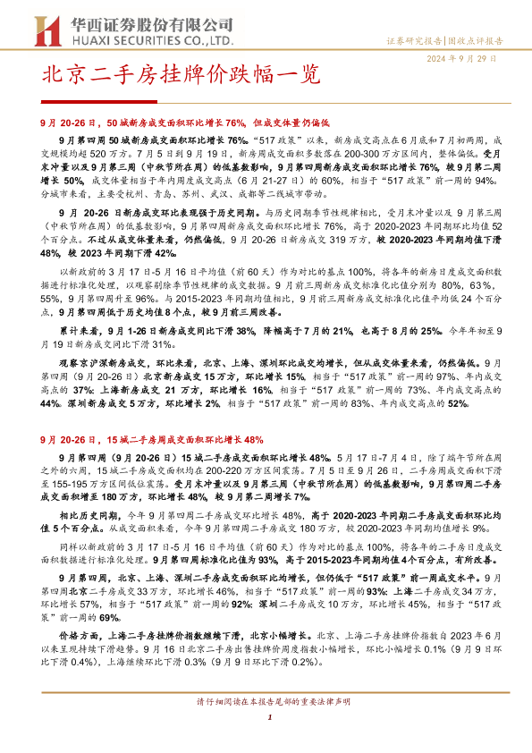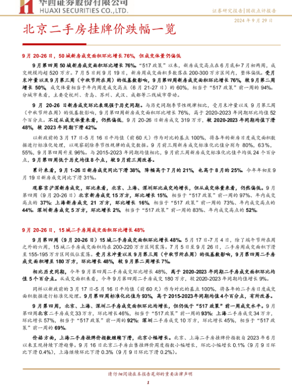 【华西证券】【20240929】北京二手房挂牌价跌幅一览-12页
