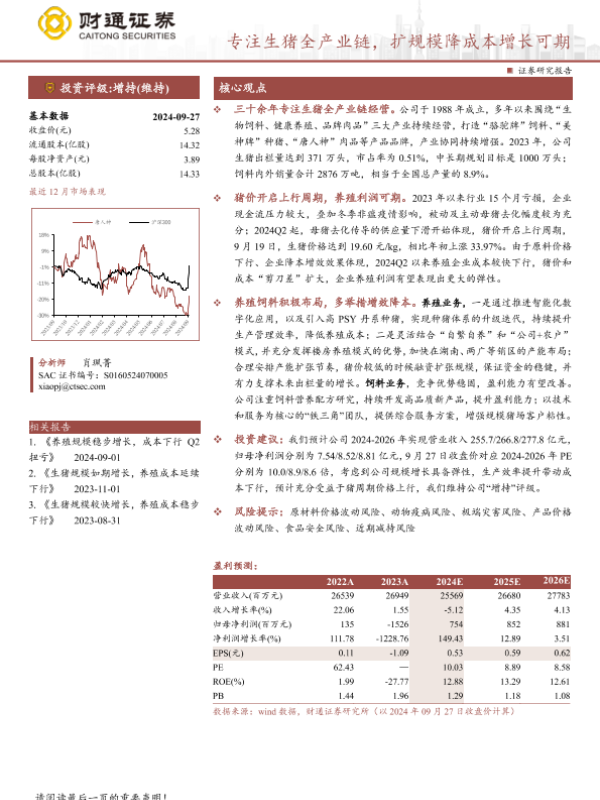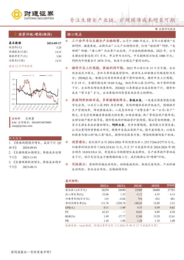 【财通证券】【20240927】唐人神(002567)专注生猪全产业链,扩规模降成本增长可期-21页
