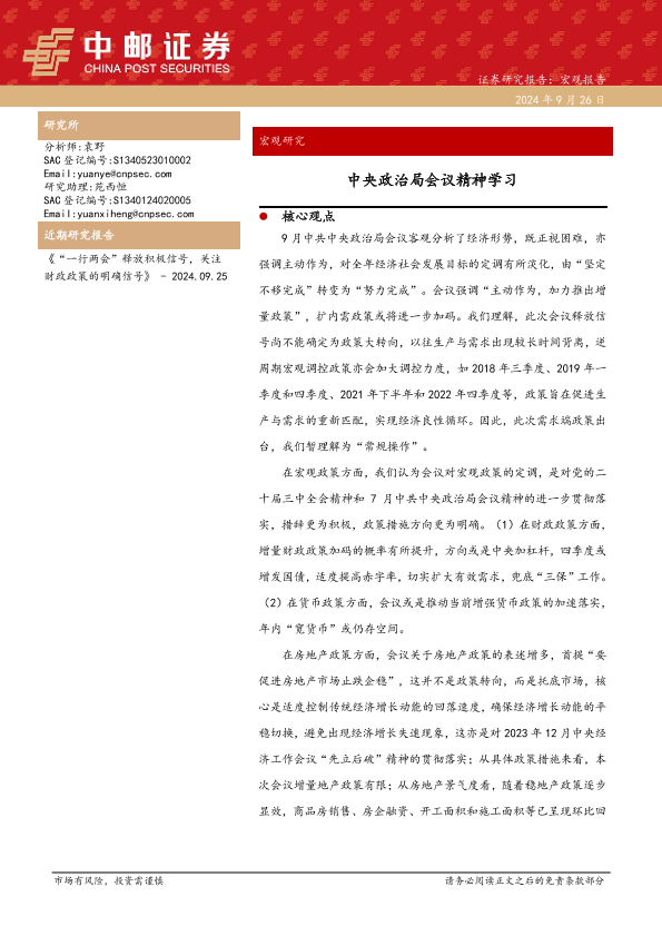 【中邮证券】【20240926】宏观研究:中央政治局会议精神学习-12页
