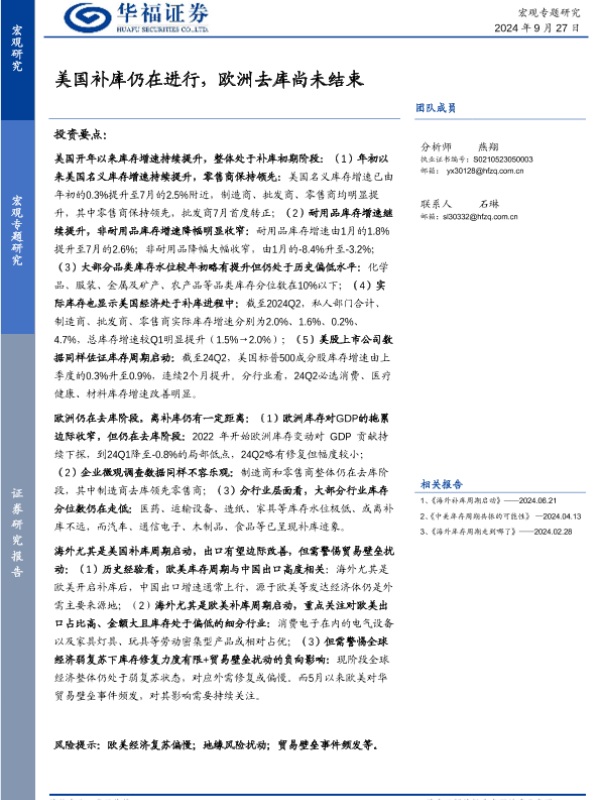 【华福证券】【20240927】宏观专题研究:美国补库仍在进行,欧洲去库尚未结束-12页