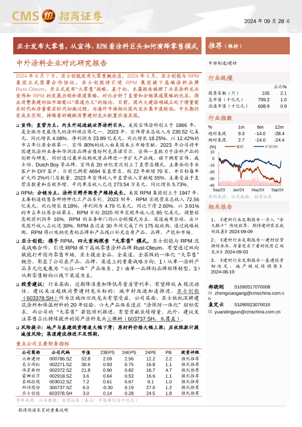 【海通证券】【20240928】建材行业中外涂料企业对比研究报告:亚士发布大零售,从宣伟、RPM看涂料巨头如何演绎零售模式-30页