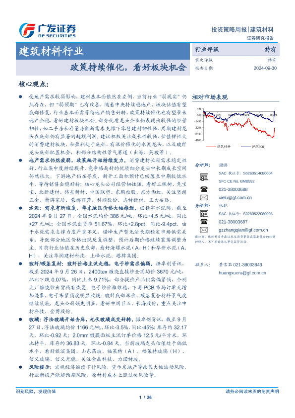 【广发证券】【20240930】建筑材料行业:政策持续催化,看好板块机会-26页
