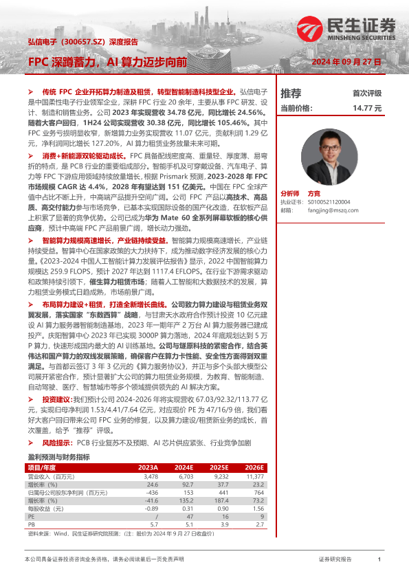 【民生证券】【20240927】弘信电子(300657)深度报告:FPC深蹲蓄力,AI算力迈步向前-35页