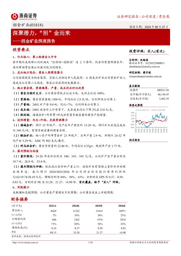 【浙商证券】【20240927】招金矿业(01818.HK)深度报告:深聚潜力,“招”金而来-30页