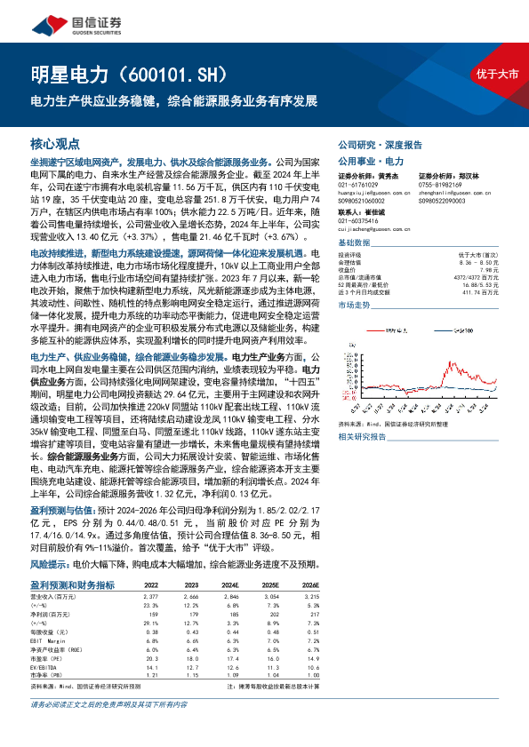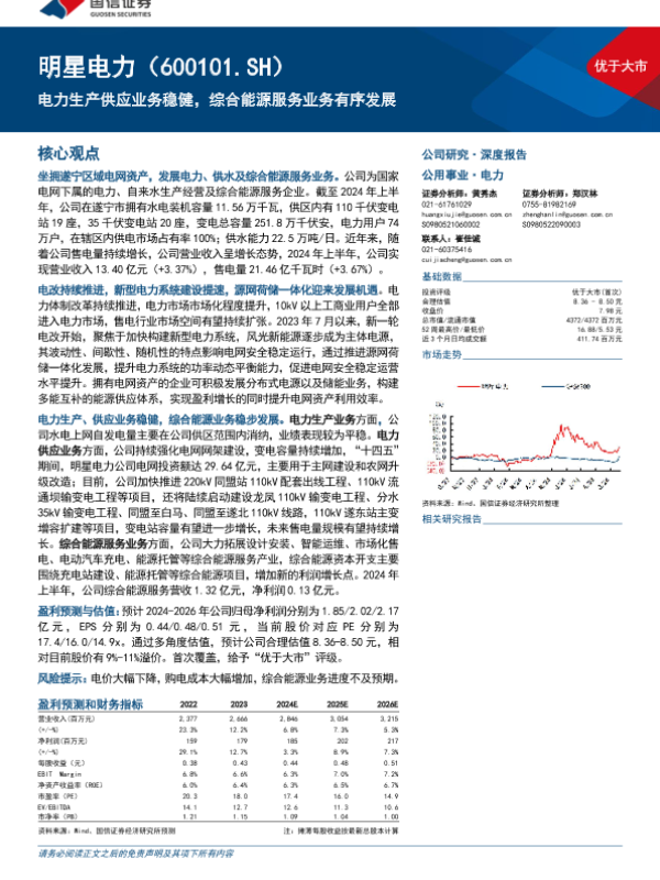 【国信证券】【20240929】明星电力(600101)电力生产供应业务稳健,综合能源服务业务有序发展-34页