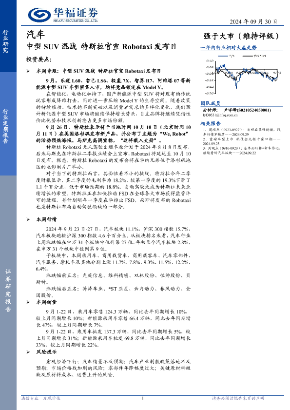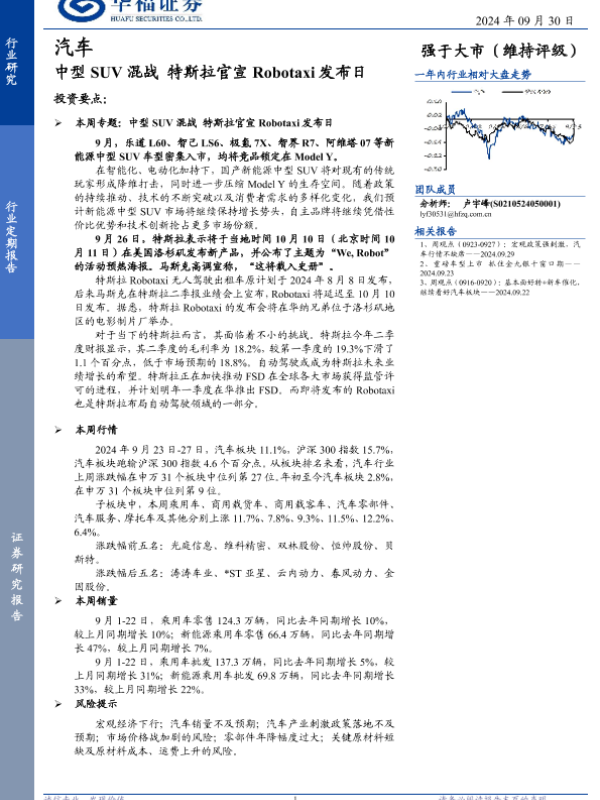 【华福证券】【20240930】汽车行业定期报告:中型SUV混战,特斯拉官宣Robotaxi发布日-11页