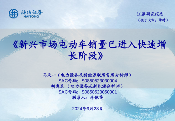 【海通证券】【20240928】电力设备及新能源行业:新兴市场电动车销量已进入快速增长阶段-39页