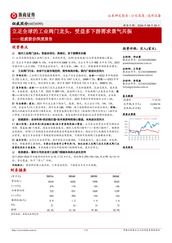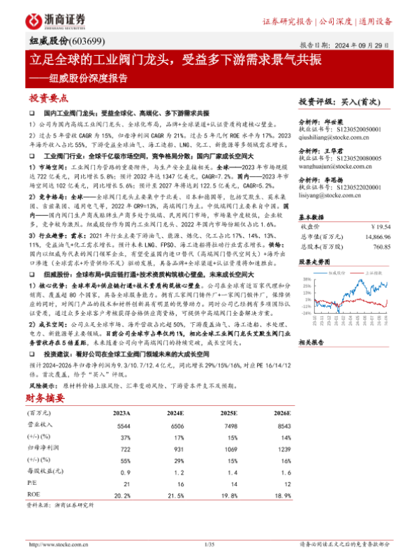 【浙商证券】【20240929】纽威股份(603699)深度报告:立足全球的工业阀门龙头,受益多下游需求景气共振-35页