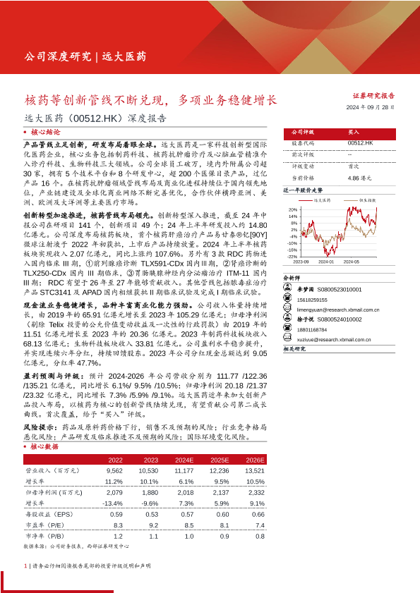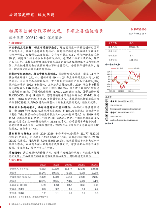 【西部证券】【20240928】远大医药(0512.HK)深度报告:核药等创新管线不断兑现,多项业务稳健增长-26页