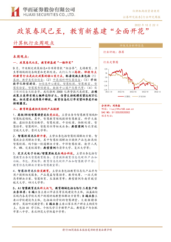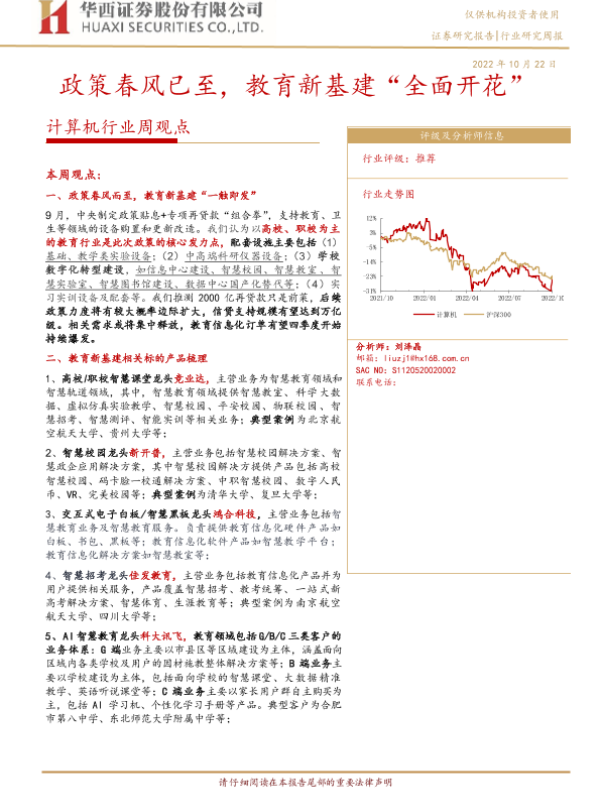 【华西证券】【20221022】计算机行业周观点:政策春风已至,教育新基建“全面开花”-32页