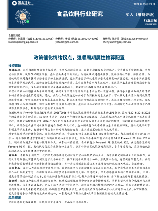 【国金证券】【20240929】食品饮料行业研究:政策催化情绪拐点,强顺周期属性推荐配置-10页