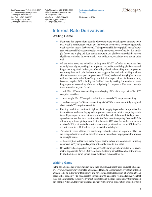 【J.P. Morgan】【20240927】JPMorgan Econ FI-Interest Rate Derivatives Waiting Game-22页