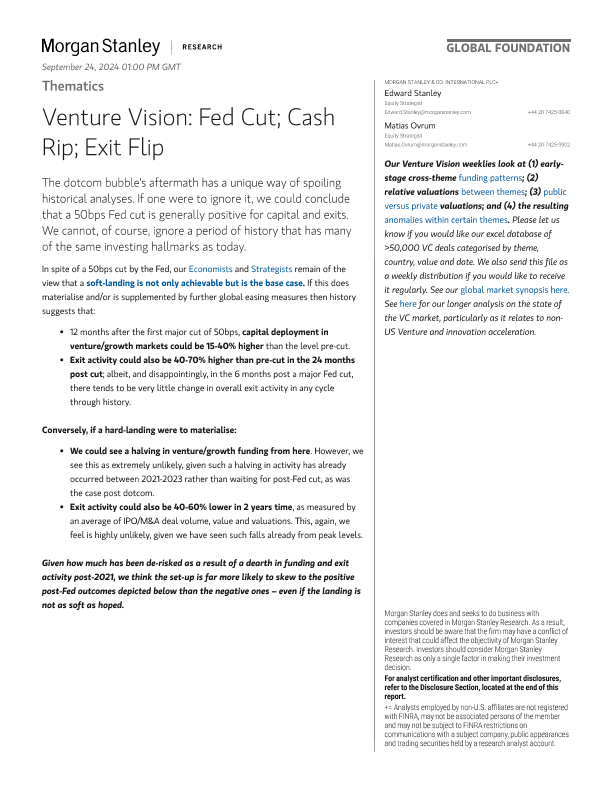 【Morgan Stanley】【202409】Thematics Venture Vision Fed Cut; Cash Rip; Exit Flip-20页