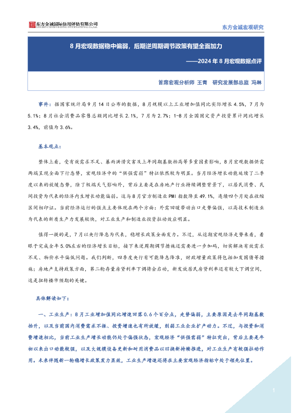 【东方金诚】【2024】2024年8月宏观数据点评-7页